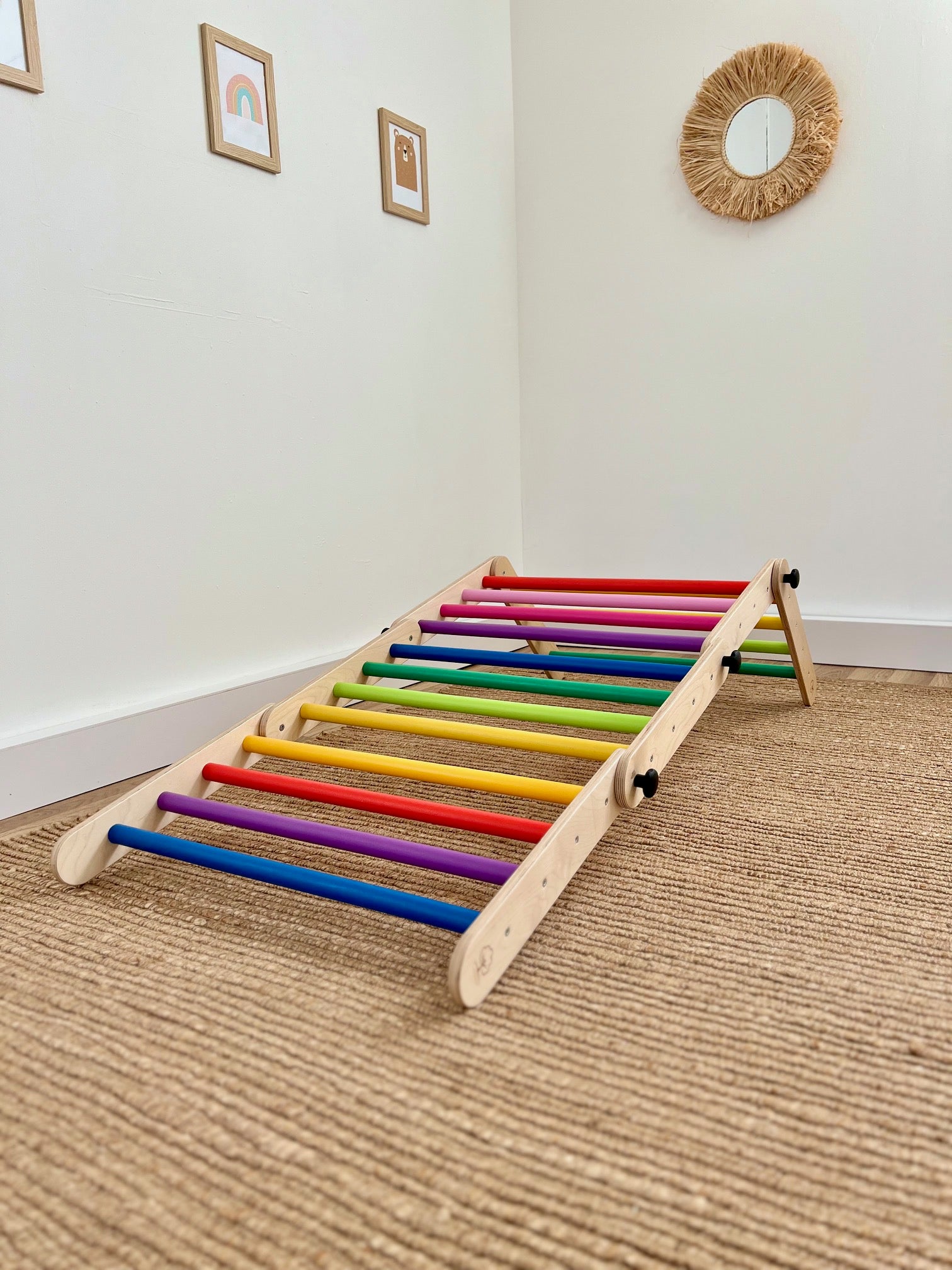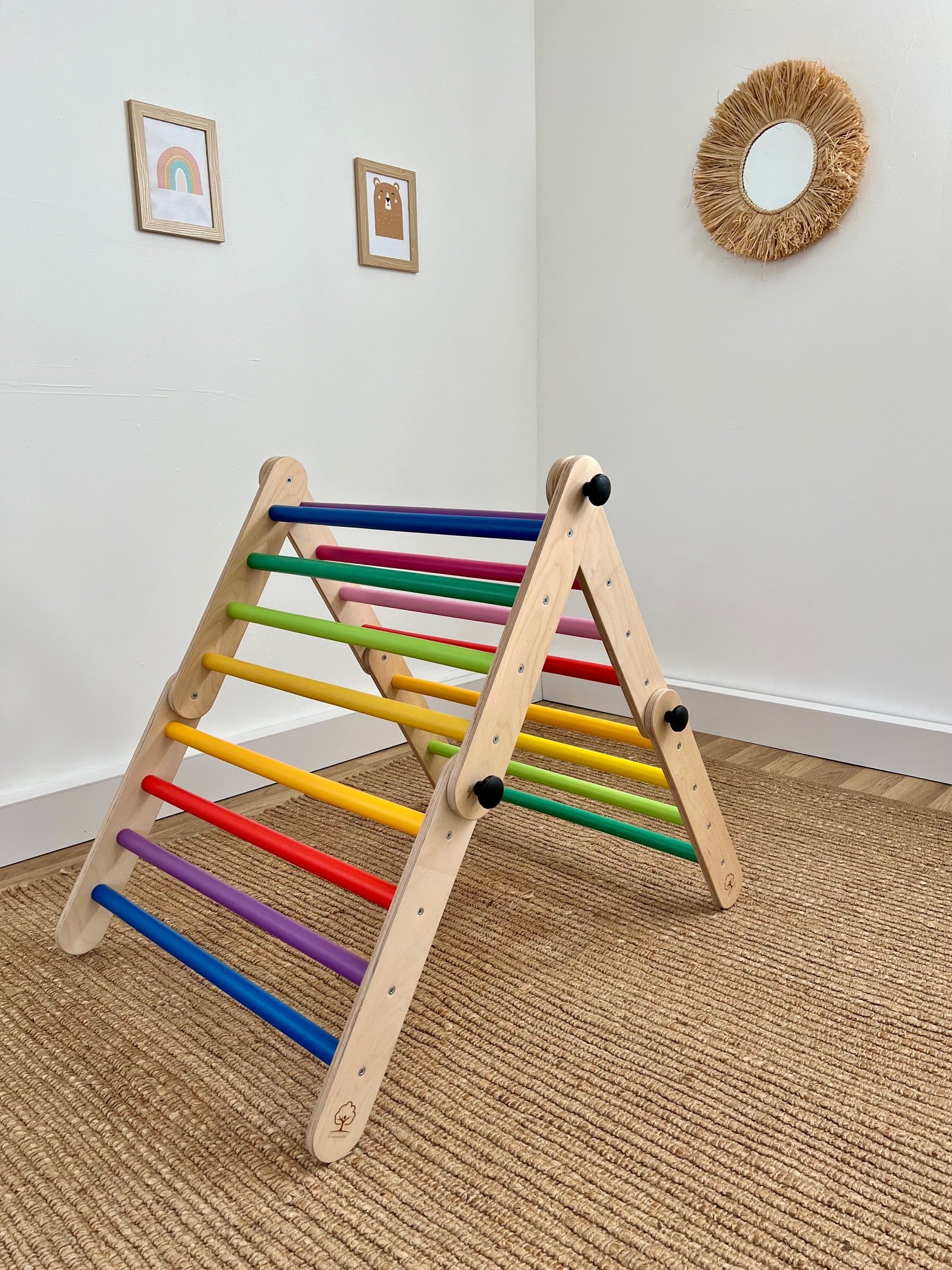 Climbing Triangle for Kids - Light wood with rainbow bars